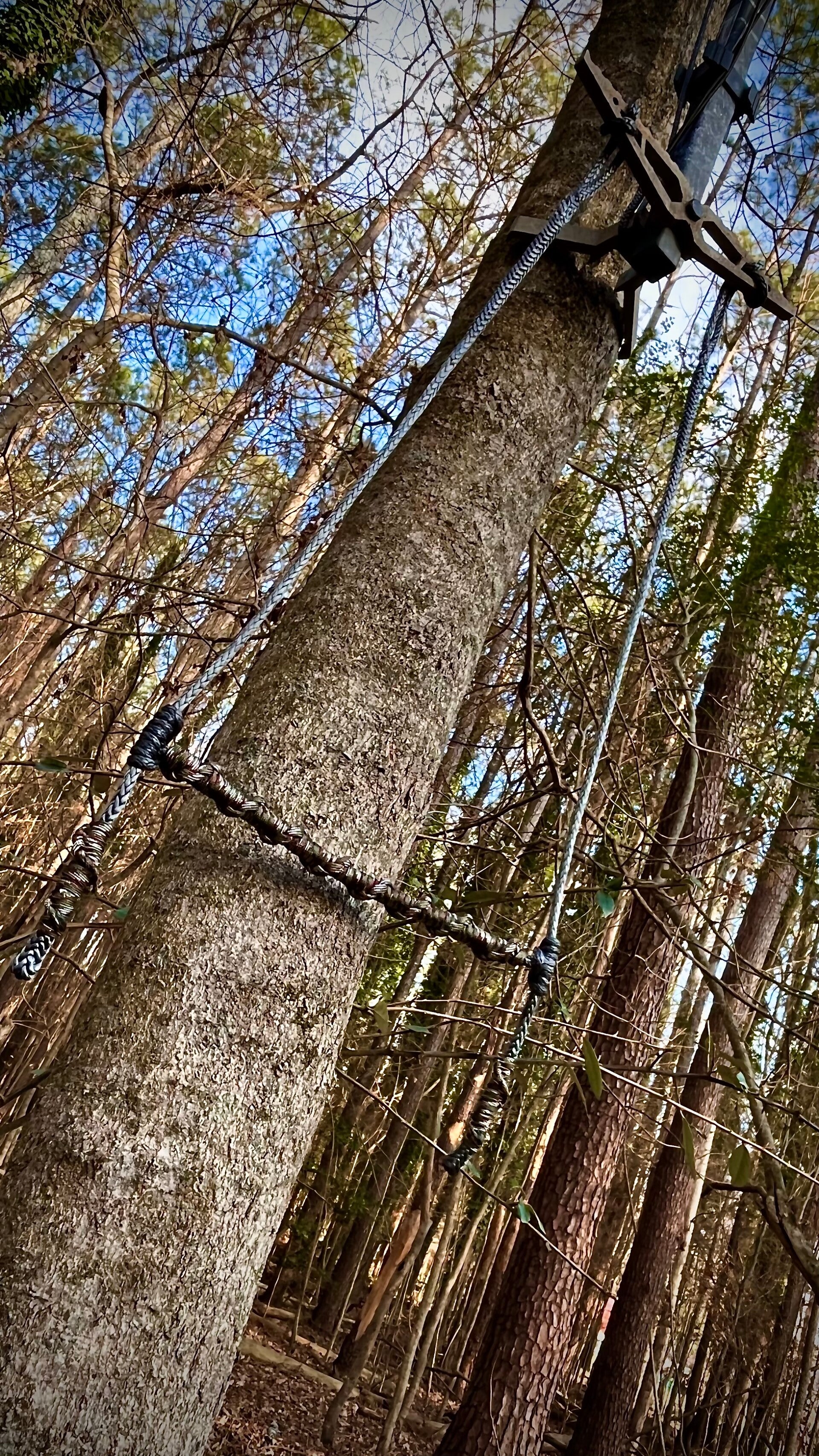 The SideLock is 3/16 Amsteel with 5 inch loops. On either side are the 1/8 Amsteel prusiks with a 10 inch paracord cinched step.